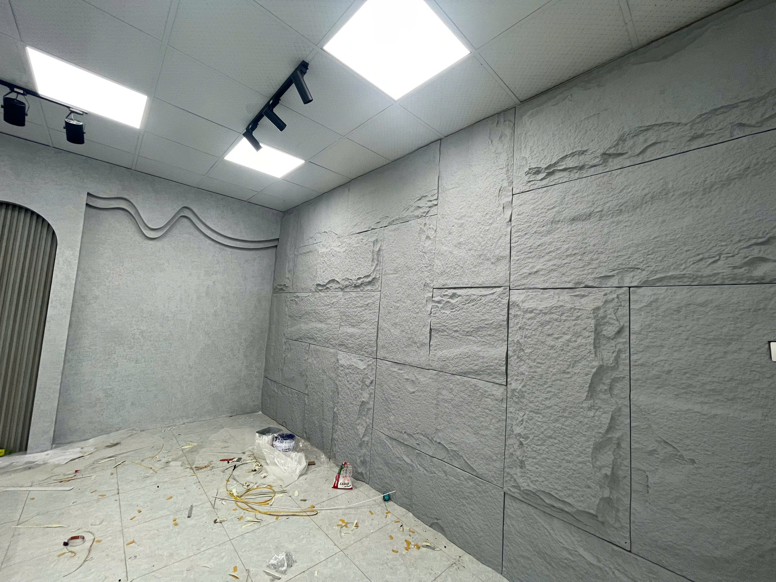 Thi công tấm ốp tường PU giả đá