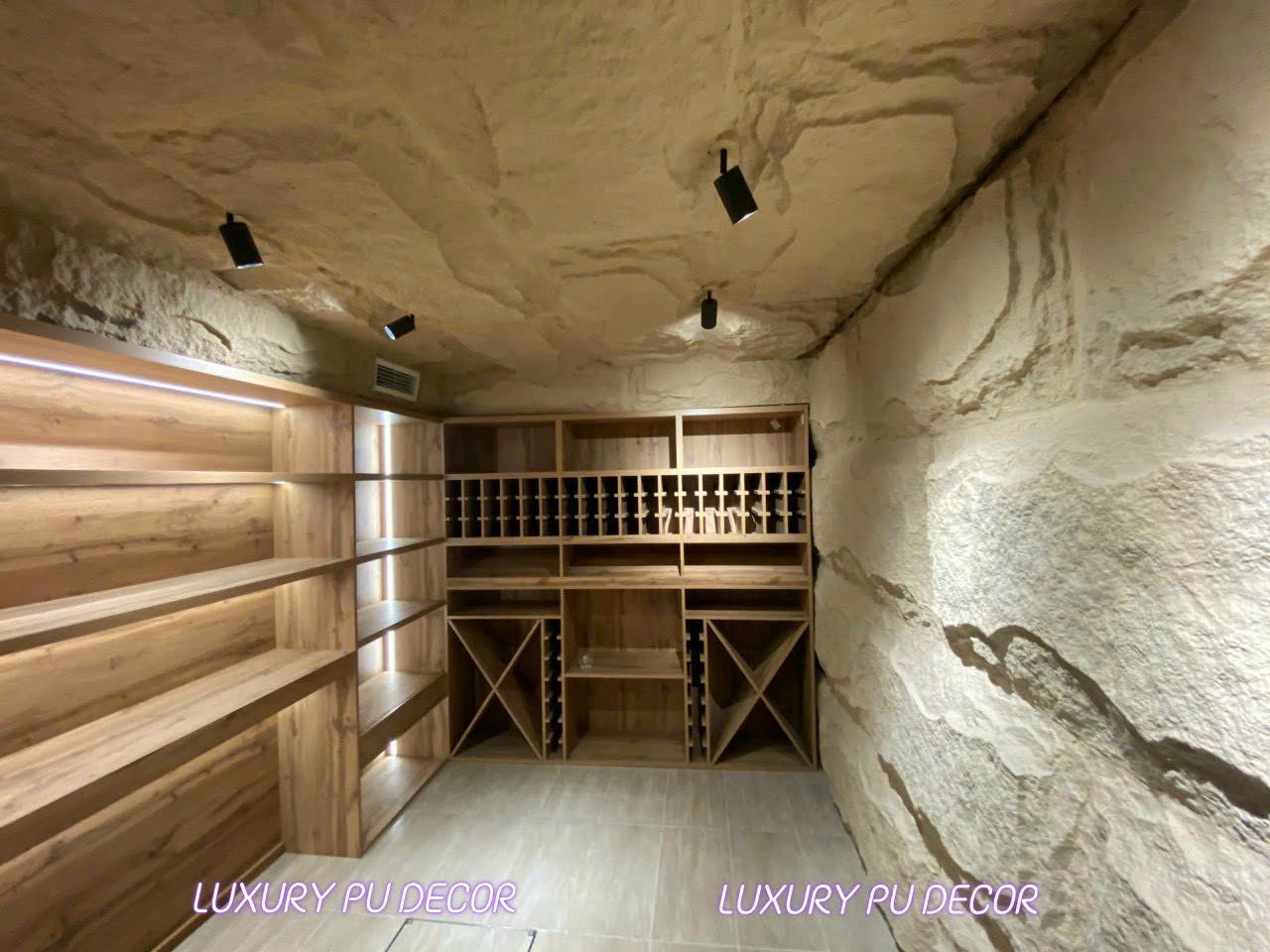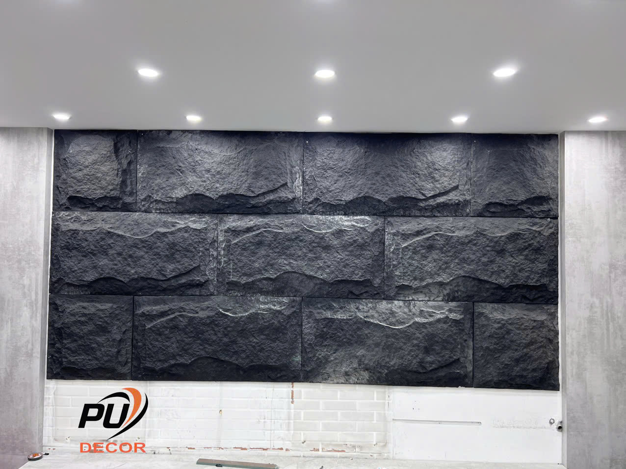 Ứng dụng:Với khả năng cách âm,cách nhiệt,chống nước cũng như dễ dàng vệ sinh,tấm ốp tường PU giả đá đã được ứng dụng trong nhiều không gian khác nhau.Trong các công trình nội thất như nhà ở,nhà hàng khách sạn,quán karaoke,phòng thu,phòng họp,...hay các công trình ngoại thất như mặt tiền nhà,hành lang,ban công.