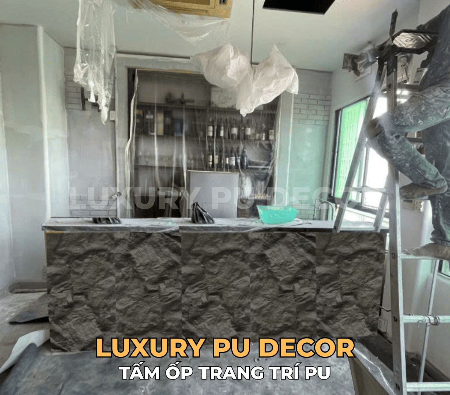 - Tường Cầu Thang/Tầng Trệt: Đây là những khu vực dễ bị ẩm mốc nhất. Việc ốp tấm PU giả đá núi giúp cô lập độ ẩm, đồng thời tạo ra không gian nội thất mạnh mẽ, cá tính.