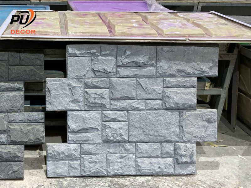 Sản phẩm được đúc từ nhựa Polyurethane (PU) bằng khuôn 3D, cho hình khối đá đều, sắc nét. Tấm nhẹ, chống ẩm, không thấm nước và phù hợp với điều kiện sử dụng lâu dài trong nhà hoặc khu vực có mái che.