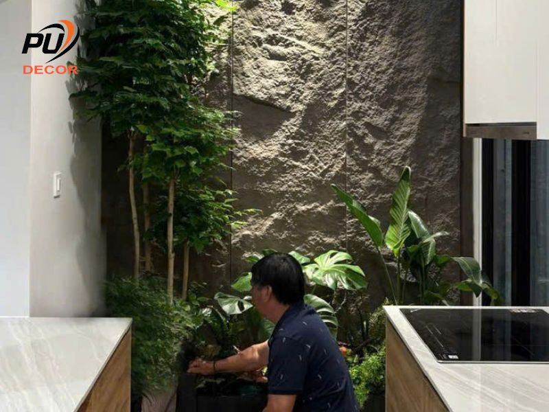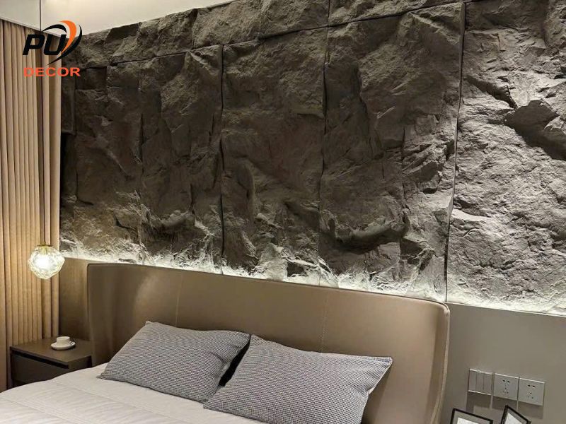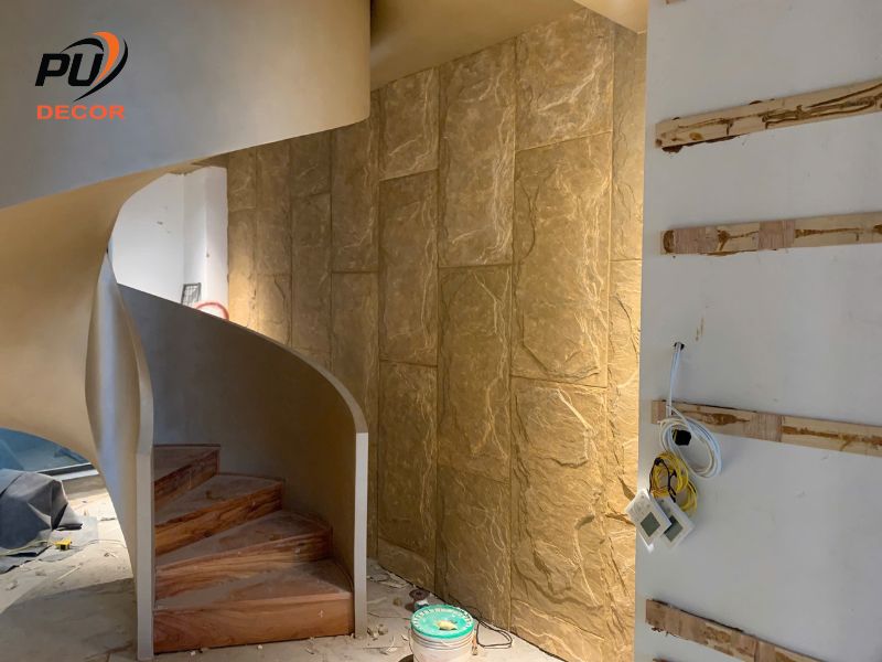 - Cấu trúc PU nhẹ hơn đá tự nhiên, giảm tải cho tường và kết cấu công trình.