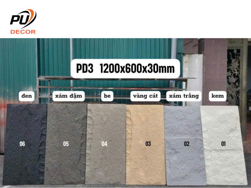 Nhờ cấu trúc ổn định, tấm PU 3D PD8 giữ form tốt trong quá trình sử dụng lâu dài, hạn chế cong vênh hay nứt gãy khi thi công đúng kỹ thuật.