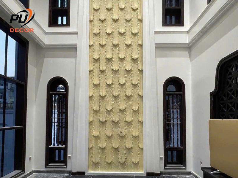 Trong danh sách mẫu PU và báo giá được sử dụng phổ biến hiện nay, tấm PU 3D là dòng vật liệu trang trí mang tính ứng dụng cao nhờ bề mặt tạo khối nổi rõ ràng, giúp mảng tường có chiều sâu mà không cần xử lý kết cấu phức tạp.