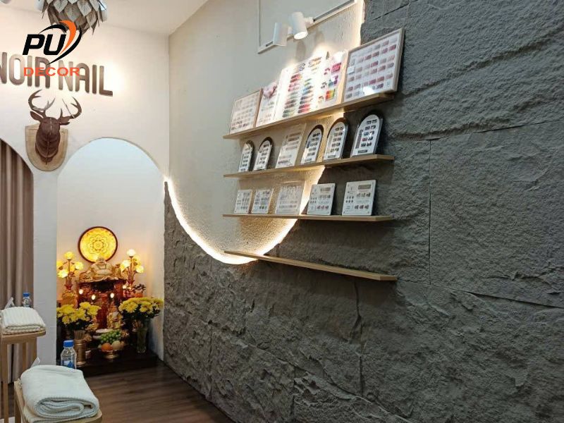 - Tính linh hoạt cao trong ứng dụng thực tế: PU giả đá thường được sử dụng trong trang trí nội – ngoại thất, showroom, spa, quán café và nhà ở hiện đại. Nhờ cấu tạo vật liệu và cách thi công gọn nhẹ, PU giả đá cho phép xử lý nhanh các mảng tường trang trí, vách ngăn hoặc điểm nhấn kiến trúc mà không cần can thiệp sâu vào kết cấu.