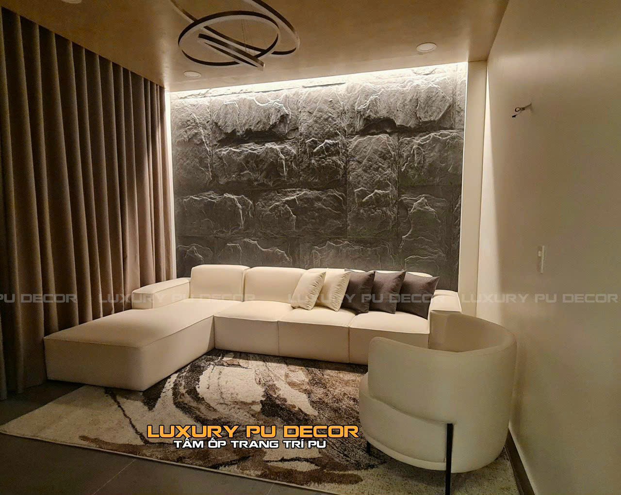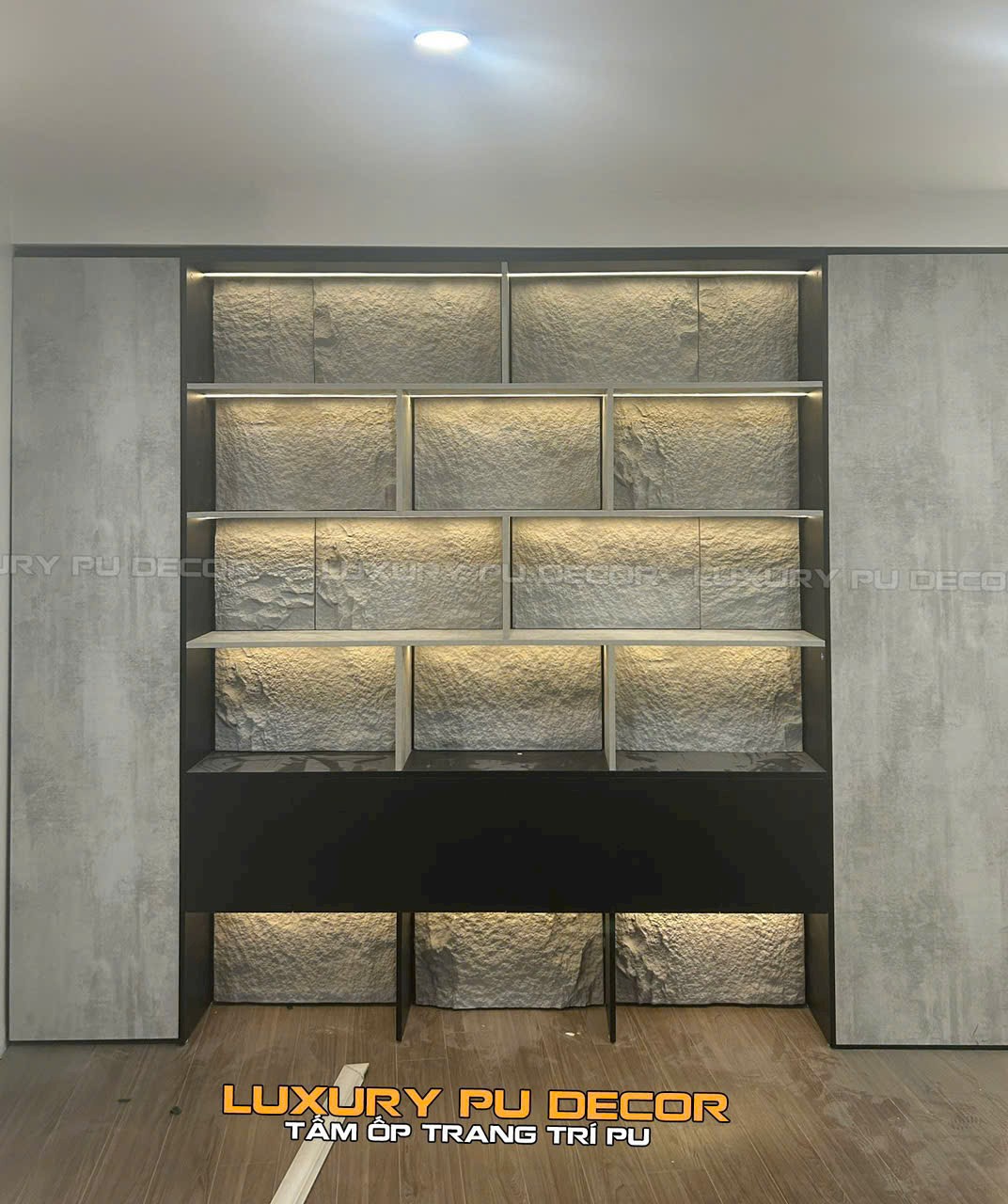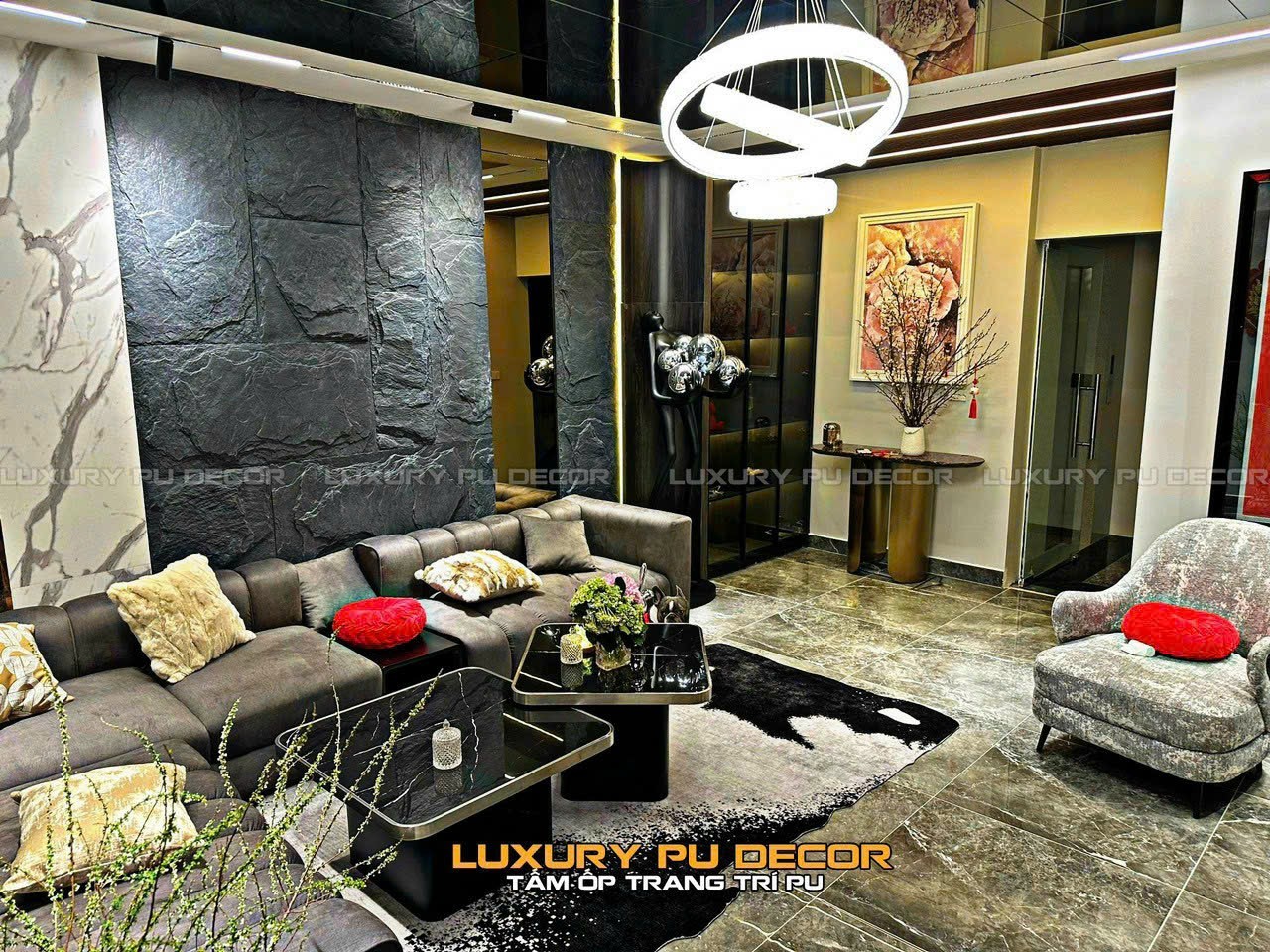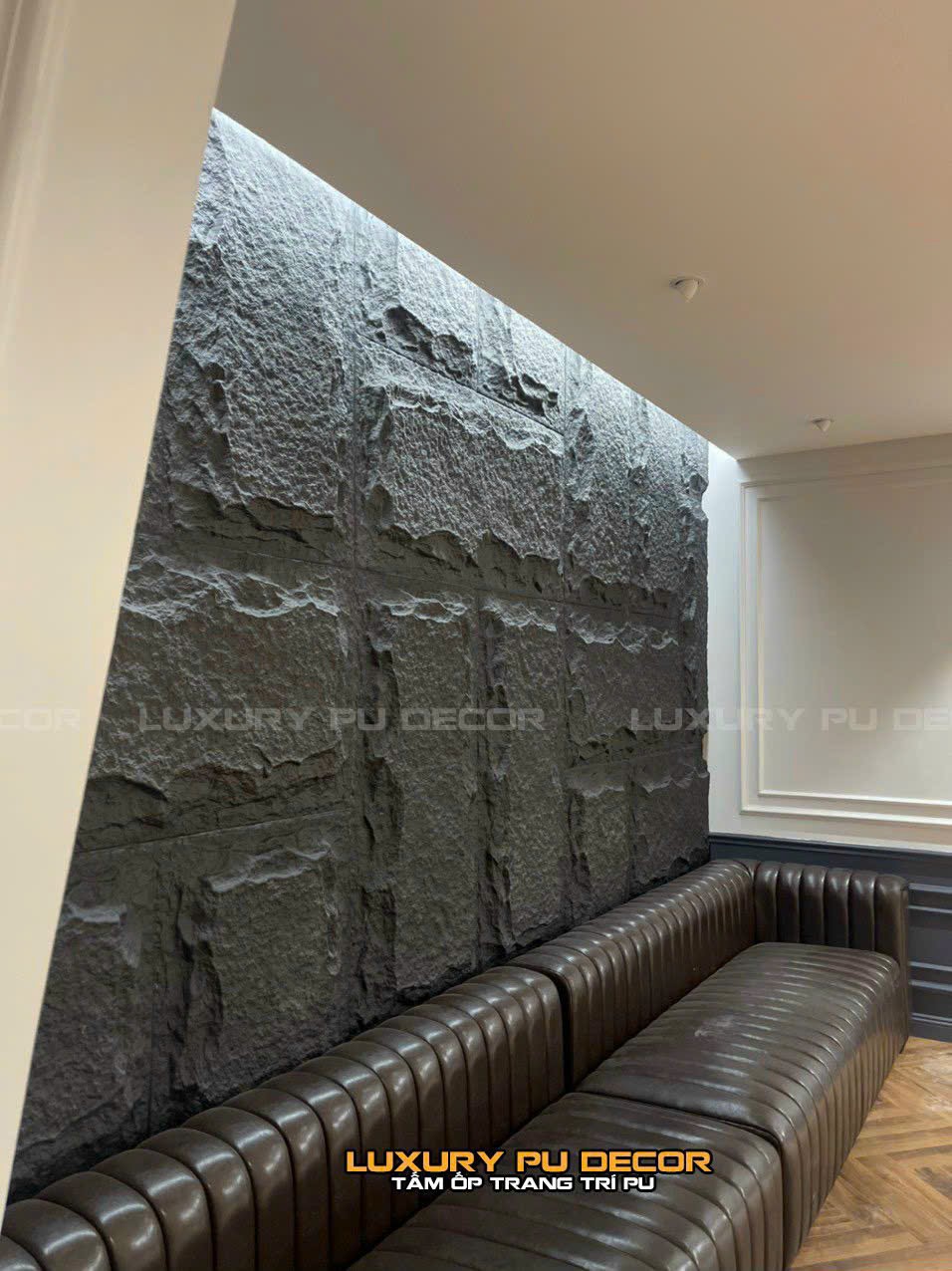 Thường hướng đến các tấm ốp tường PU giả đá màu trầm như xám,nâu,đen