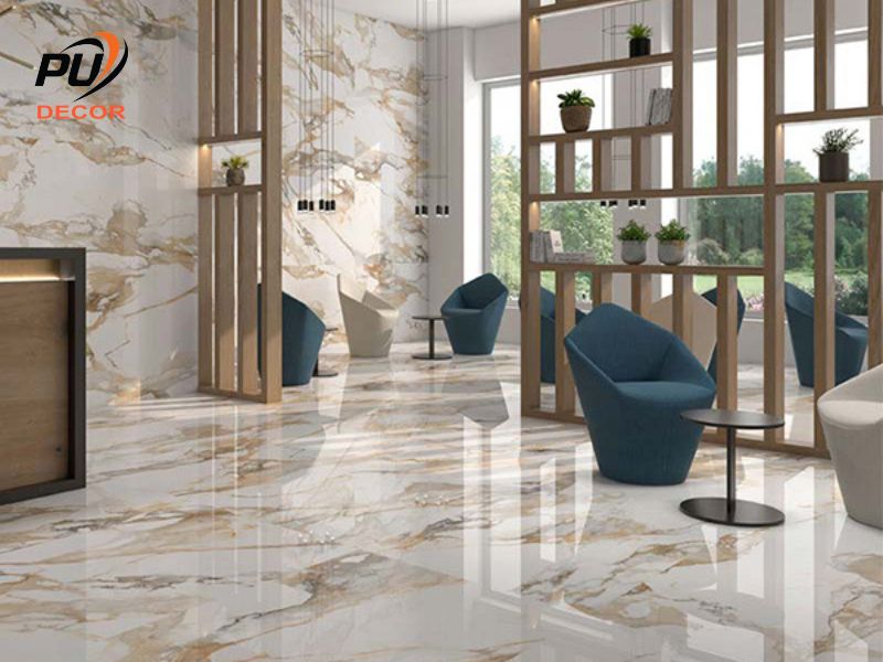 So với đá marble tự nhiên, tấm ốp đá cẩm thạch có giá thấp hơn nhiều nhưng vẫn giữ được vẻ đẹp sang trọng cho công trình.