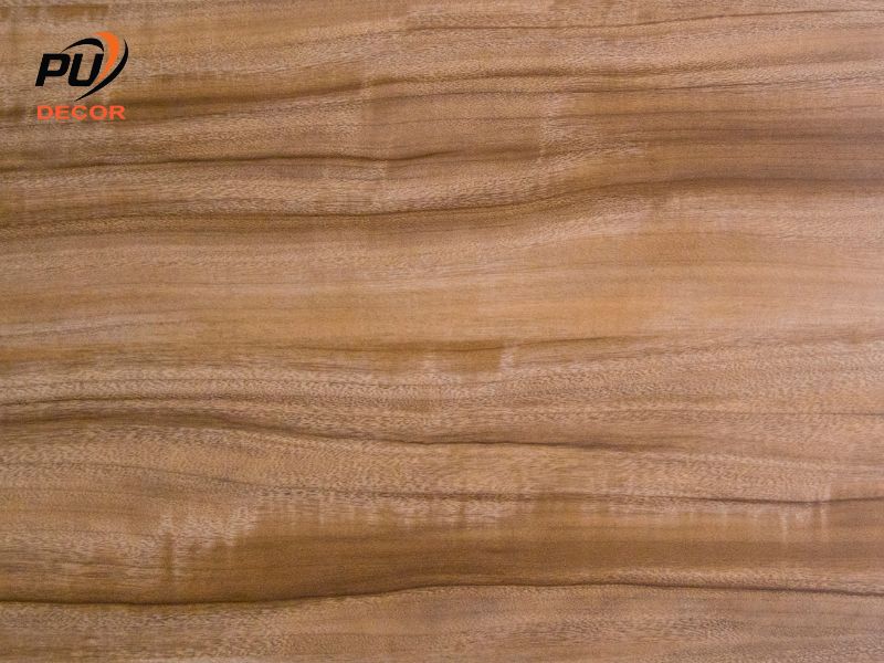 Vân gỗ rõ rệt, tạo chiều sâu thị giác. Thường dùng cho mảng trang trí hoặc khu vực cần nhấn mạnh phong cách, ít dùng toàn bộ không gian vì chi phí và cảm quan khá mạnh.