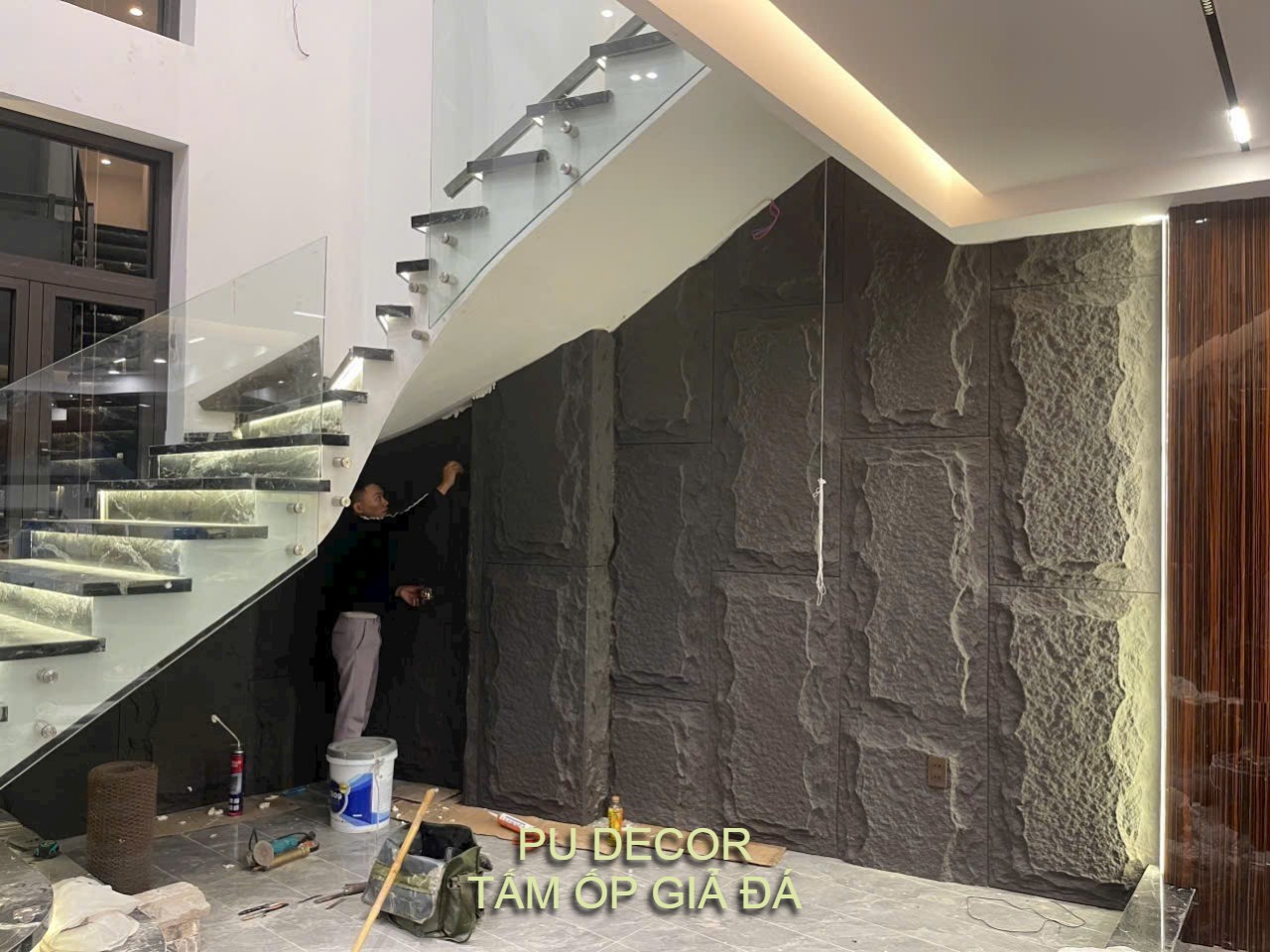CÁCH LẮP ĐẶT TẤM ỐP TƯỜNG PU GIẢ ĐÁ