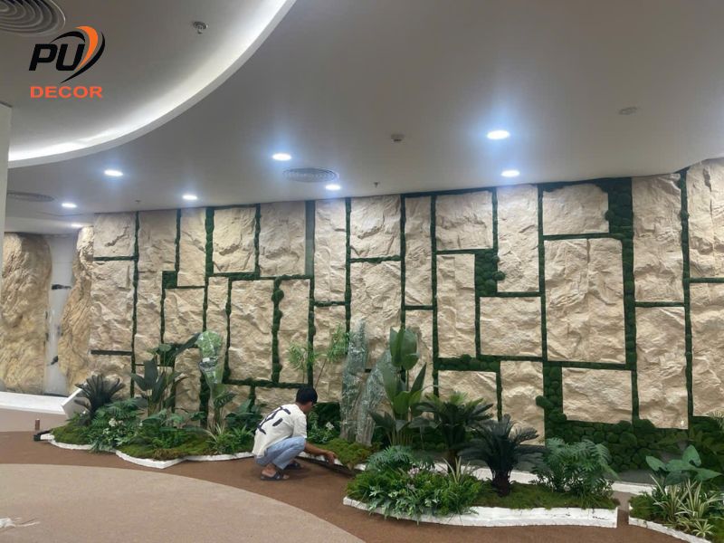 Tính linh hoạt trong thiết kế và thi công giúp tấm PU giả đá cho đơn vị Decor trở thành vật liệu được ứng dụng rộng rãi trong nhiều loại hình công trình trang trí hiện nay. Nhờ trọng lượng nhẹ và khả năng tạo hiệu ứng đá tự nhiên nhanh chóng, vật liệu này đặc biệt phù hợp với các dự án cần tối ưu tiến độ và chi phí.