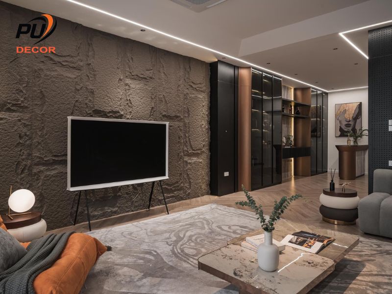 - Tạo hiệu ứng thẩm mỹ giống đá thật: Tấm PU giả đá mang lại vẻ sang trọng nhưng không phát sinh chi phí cao như đá tự nhiên.