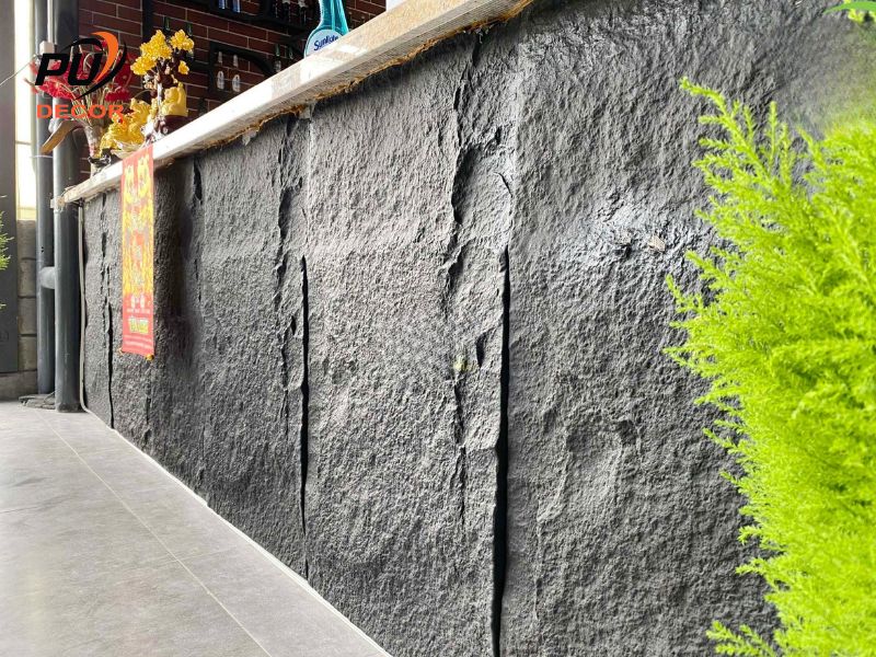 Với môi trường nắng mưa, tấm PU giả đá ốp tường ngoài trời là lựa chọn ổn định hơn so với PVC.