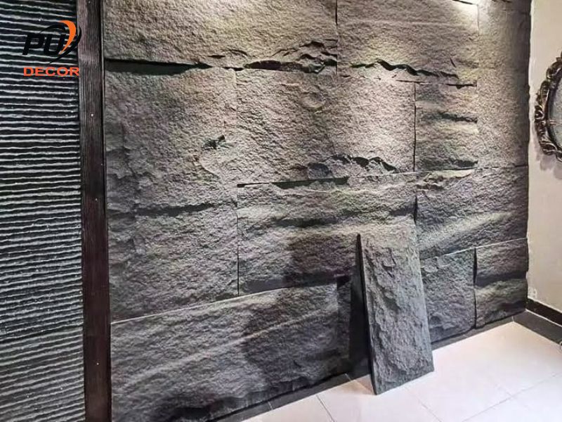 Tấm PU giả đá ốp tường phòng khách là vật liệu trang trí được làm từ Polyurethane, mô phỏng bề mặt đá tự nhiên