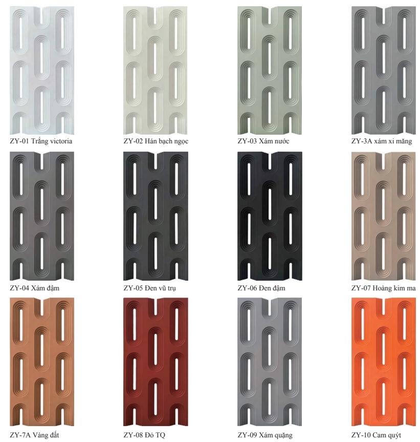 Màu sắc: Trắng tuyết, Trắng ngọc bích, Xám nước trong, Xám xi măng, Xám núi lửa, Đen cổ điển, Đen sáng, Vàng lanh, Đỏ Trung Quốc, v.v.