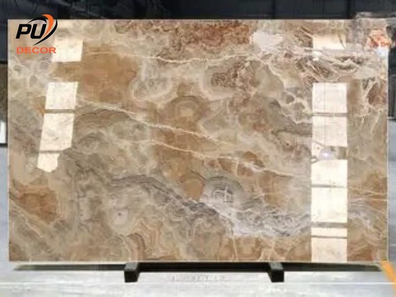 Mỗi tấm đá đều có các đường vân khác nhau, giúp mảng trang trí trở nên độc đáo và không bị lặp lại. Khi ánh sáng chiếu qua, các đường vân sẽ hiện lên rõ nét như một bức tranh nghệ thuật.