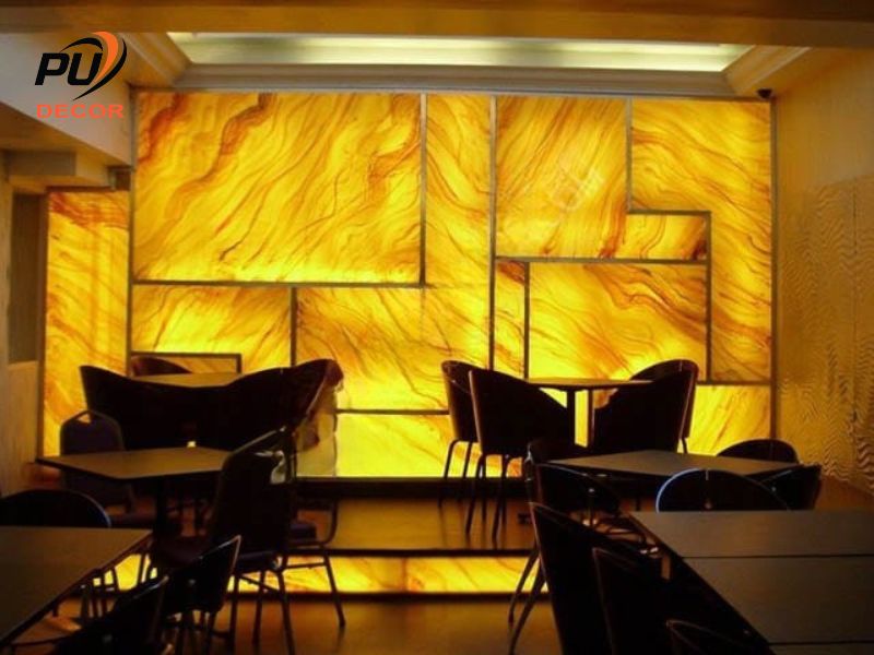 Nhờ cơ chế này, tấm đá tạo ra hiệu ứng phát sáng mềm mại từ bên trong, giúp các họa tiết vân đá trở nên sống động và thu hút hơn so với vật liệu ốp tường thông thường.